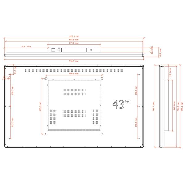 43 Inch Big Screen DVI Capacitive Touch Panel Monitor 1080P 10 Points